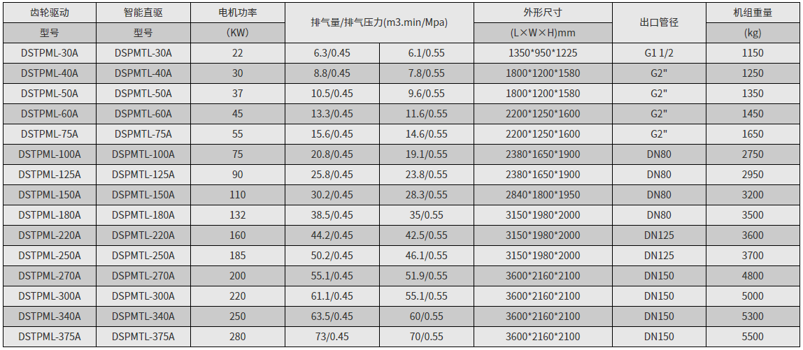 兩級壓縮永磁變頻低壓螺桿機(jī)技術(shù)參數(shù)