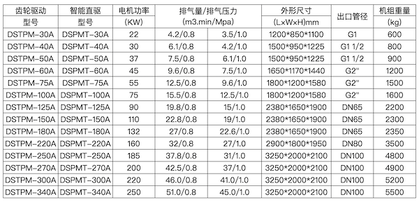 兩級(jí)壓縮永磁變頻螺桿機(jī)技術(shù)參數(shù)