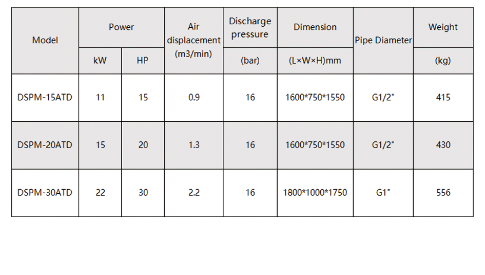 With the development of science and technology, more and more metal machining enterprises choose to use laser cutting machine, the use of laser cutting machine must be equipped with high quality, high pressure, low water vapor air compressor. For this reason, Desran compressor specially customized 16 bar combined permanent magnet variable frequency screw compressor for laser cutting machine. It integrates permanent magnet variable frequency screw compressor, air dryer, air tank and high efficiency filter, which can directly output high-quality 16 bar compressed air and perfectly cooperate with laser cutting machine.